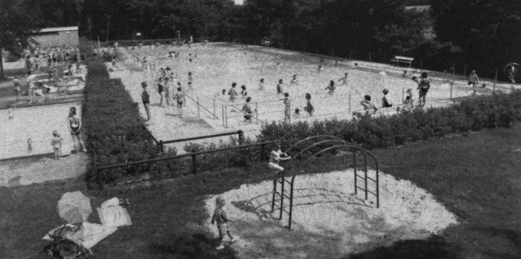 Die Gemeinde übernahm das bisher von den Schulen gepachtete Freibad und kaufte das Grundstück. Im darauffolgenden Jahr wurde das Freibad ausgebaut: Das Becken maß nun 50 mal 25 Meter, mit separaten Bereichen für Schwimmer, Nichtschwimmer und ein 12 Meter langes Planschbecken. Der Sprungturm aus Holz wurde durch einen drei Meter hohen Betonturm ersetzt.